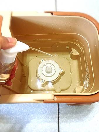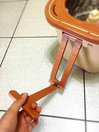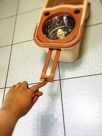 右邊是盛裝乾淨的清水,揉水洗淨-單手就可以輕鬆驅動拖布轉盤,洗淨拖布。