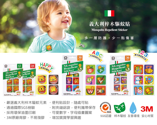 ,結合了字母、數字,讓孩子在防蚊的過程中能一邊學習,輕鬆防蚊