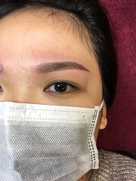 看看我另一邊的眉毛...我立刻跟小夢說快幫我另一邊也補上,太可怕了哈哈~
