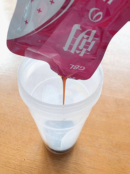 把GBL嘉寶果酵素倒入瘦瘦杯內