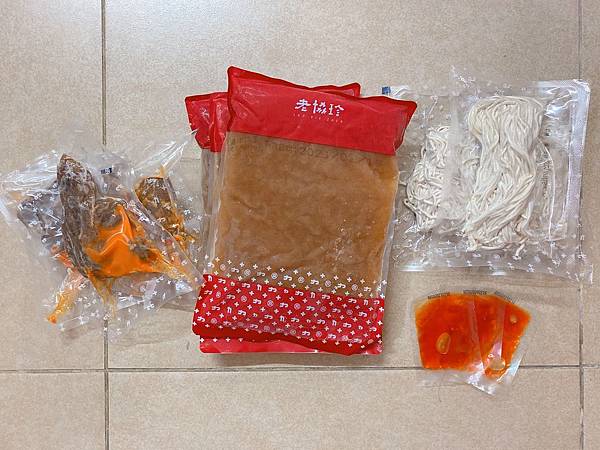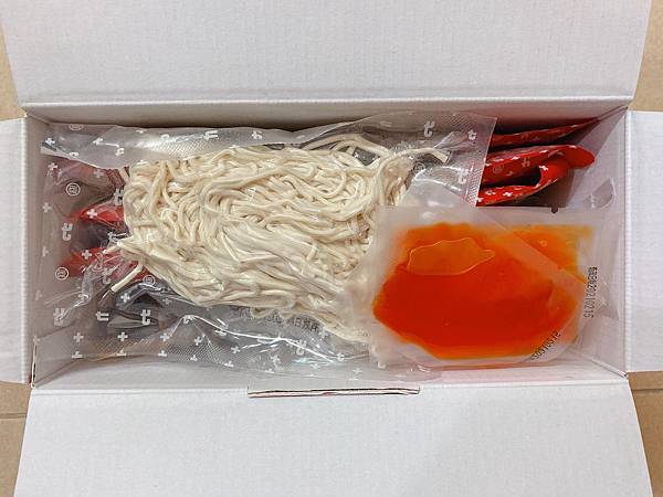 內容物有:川味牛肉包、牛肉湯包、拉麵包、辣油包